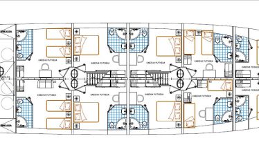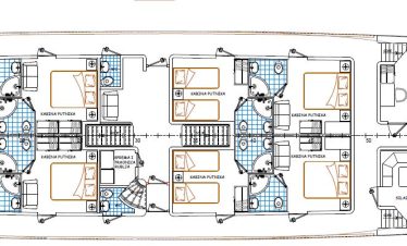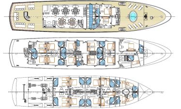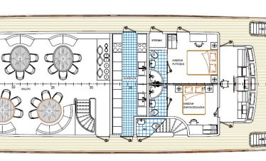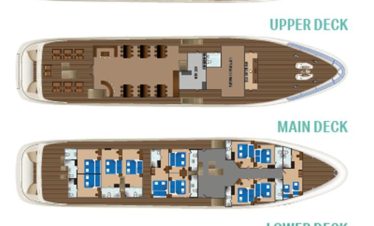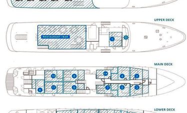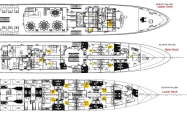 Opće informacije Kategorija: Deluxe Kapacitet smještaja putnika: 44 Kabina za 2 osobe: 22 Broj kabina: 22 Glavna paluba: 14 kabina Podpaluba: 8 kabina Sunčana paluba:...