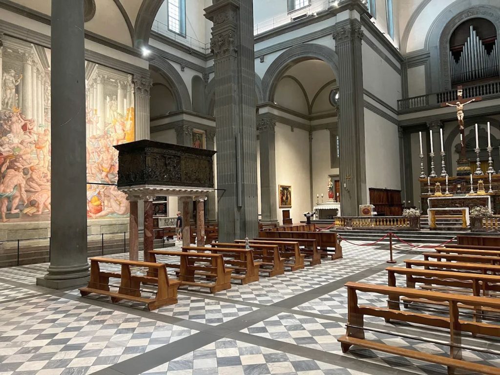 The Dominicans arrived in Florence from Bologna, led by Fra’ Giovanni da Salerno, in 1219. In 1221 they acquired the small church of Santa Maria delle Vigne, named after the surrounding farmland (then outside the city walls). The foundation stone of the new, larger building was laid on 18 October 1279, the feast of Saint Luke, with the blessing of Cardinal Latino Malabranza Orsini, and it was completed in the mid-14th century.