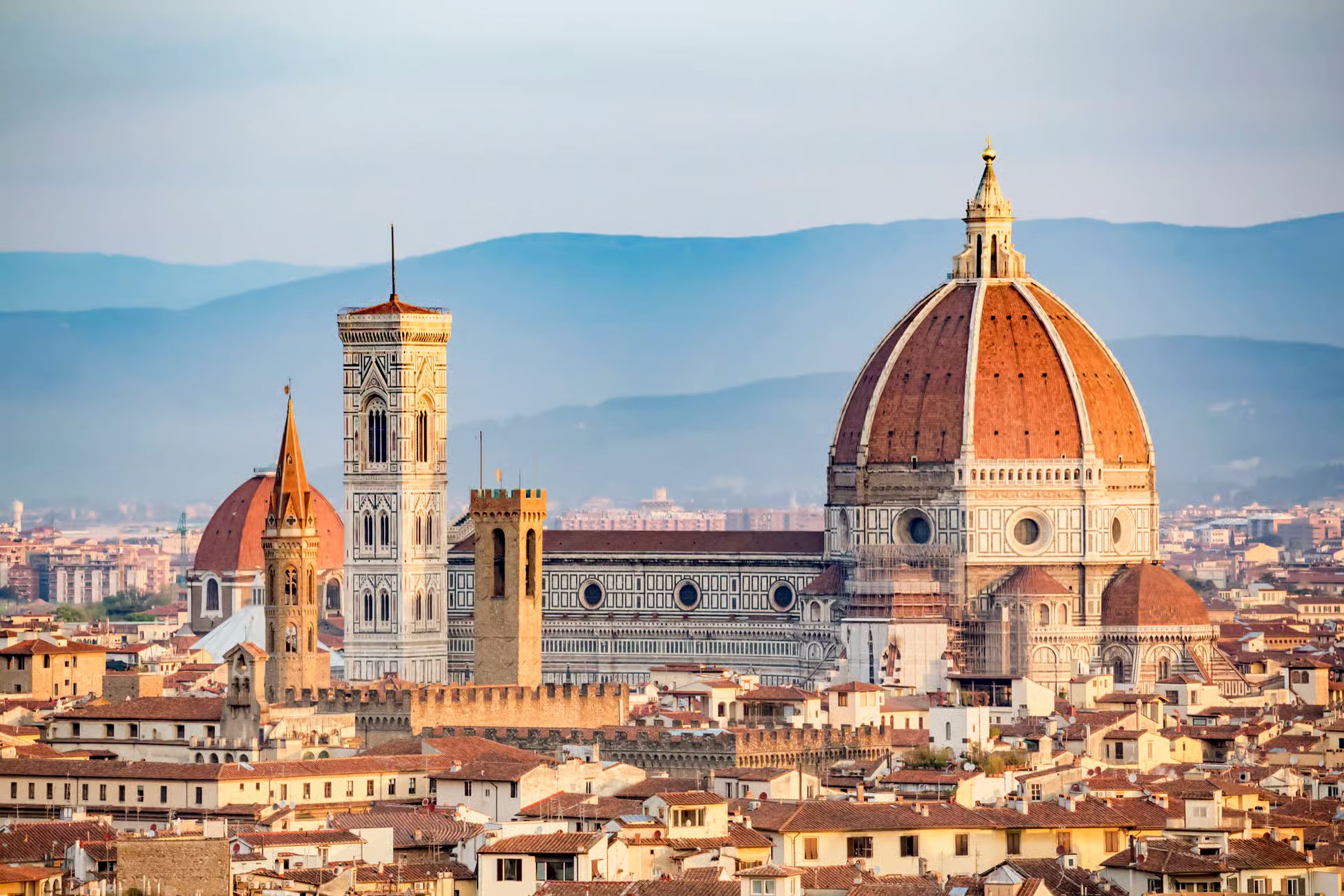 The Duomo, whose full name is Santa Maria del Fiore, is one of the most famous and revered architectural wonders in the world. Located in the heart of the Tuscan city, the Duomo is a symbol of artistic greatness and brilliant engineering of the Italian Renaissance. The dome of the cathedral, designed by architect Filippo Brunelleschi, is one of the greatest architectural masterpieces. At 114 meters high, it offers a breathtaking panoramic view of the city. The construction of the dome was an epoch-making challenge for its time, demonstrating the ingenuity and skill of Renaissance artists. Next to the cathedral is Giotto’s Campanile, a bell tower of extraordinary beauty. Designed by Giotto di Bondone himself, the bell tower is a Gothic marvel with rich decorations and sculptures that tell biblical and historical stories.