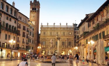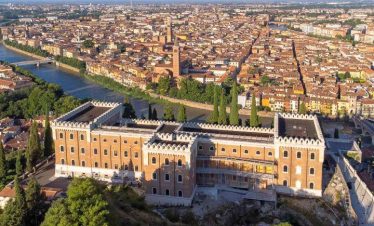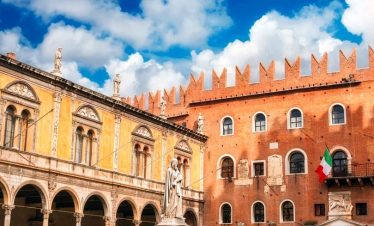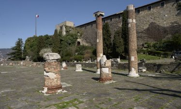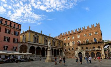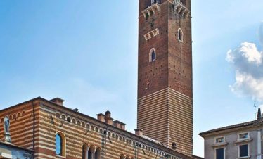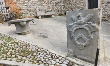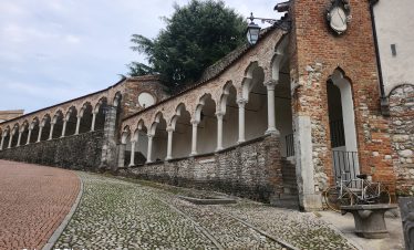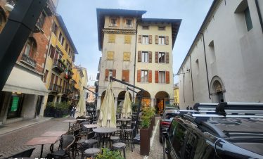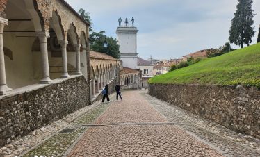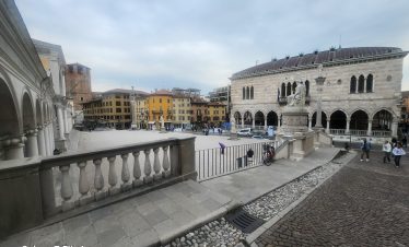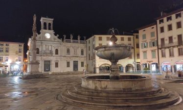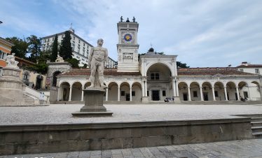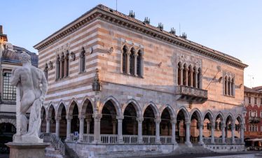 Ovdje, u niši s Madonom i djetetom, nalazi se model dvorca prije nego što je uništen u potresu 1511. Na suprotnoj strani trga, Sat kula gleda na kapelu i Ložu San Giovannija. Dva velika kipa iz 17. stoljeća na rubu nasipa predstavljaju Herkula i Kakusa. Prelazeći preko Arco Bollani, izgrađenog 1556. prema nacrtu Andree Palladija, dolazite do dvorca, zaobilazeći očaravajući Porticato del Lippomano.