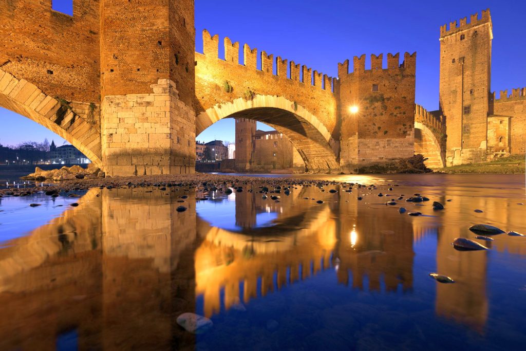 Situated on what was probably once a Roman fort just outside the city walls, Castelvecchio is a square-plan fortress that was the most powerful military structure in Verona during the Middle Ages. Although not particularly decorative (it was nevertheless designed to be functional), the castle is now home to the Castelvecchio Museum and Gallery. The castle and museum are easily accessible from the city and are perfect for a visit to Verona.